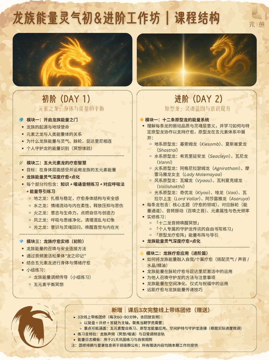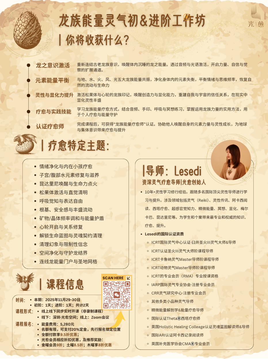 - 🎁 礼赠:报名前 3 位 赠送 龙族能量精油 1 支(价值 599 元)